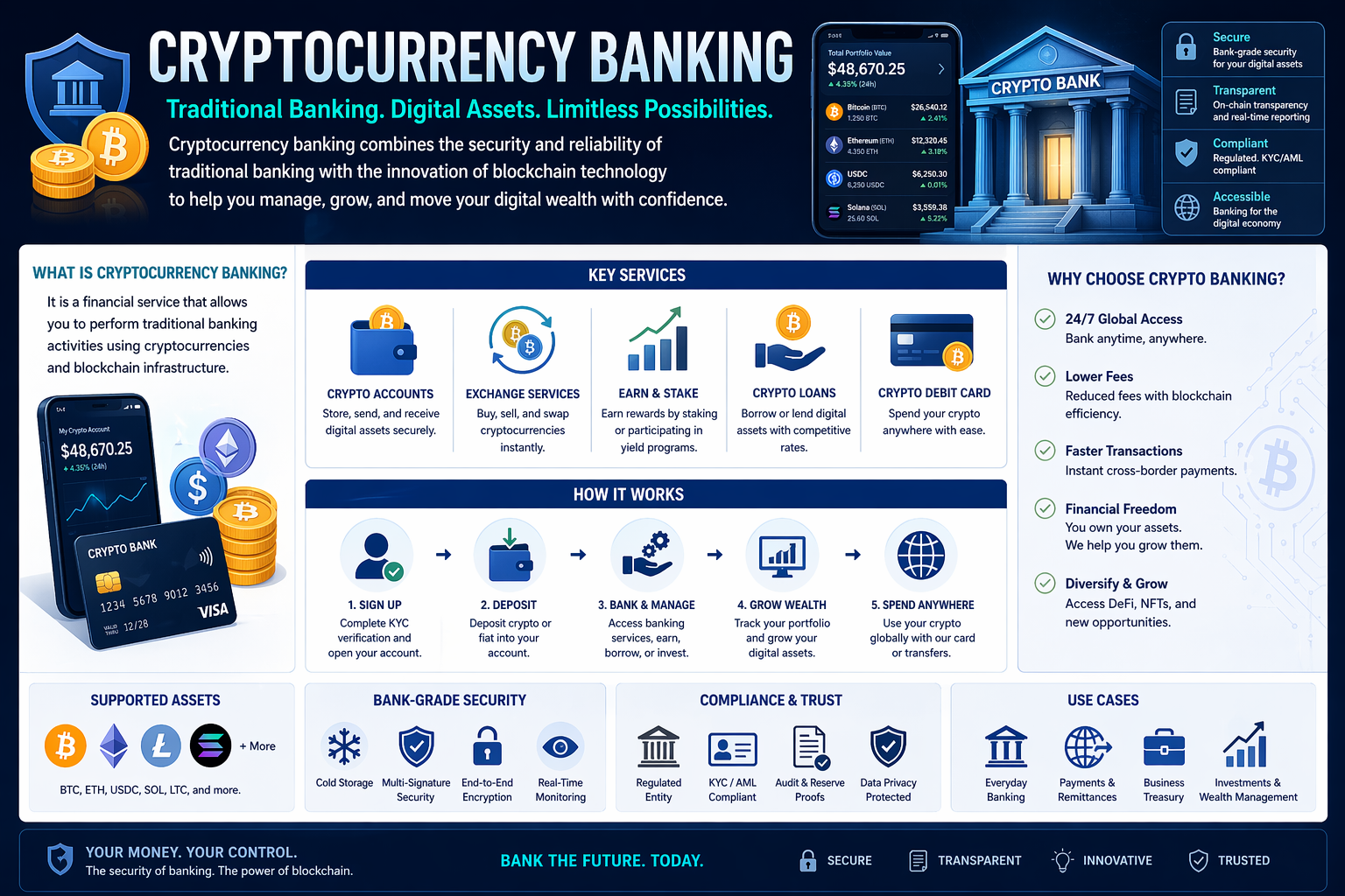 Artificial Intelligence (AI) is set to play an influential role in the advancement of crypto banking platforms. By leveraging machine learning algorithms, financial institutions can analyze vast amounts of transaction data, thereby improving risk assessment and fraud detection processes. Additionally, AI-driven chatbots can enhance customer service, providing users with immediate assistance regarding their cryptocurrency payment systems and inquiries about blockchain based banking solutions. The integration of AI not only streamlines operations but also enhances user experience, making it a crucial component in the evolving landscape of digital asset financial institutions.